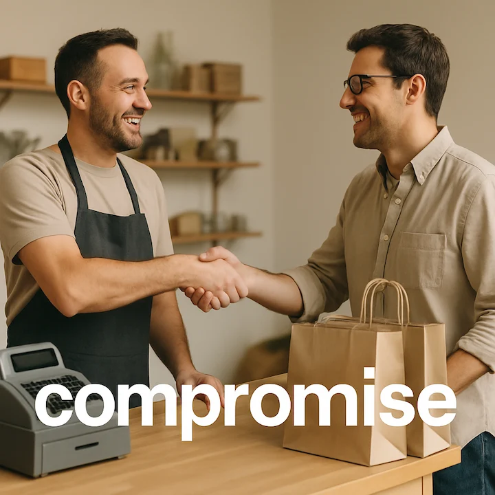 - 👉 그들은 가격에서 중간 지점에서 만나 타협하기로 했다.