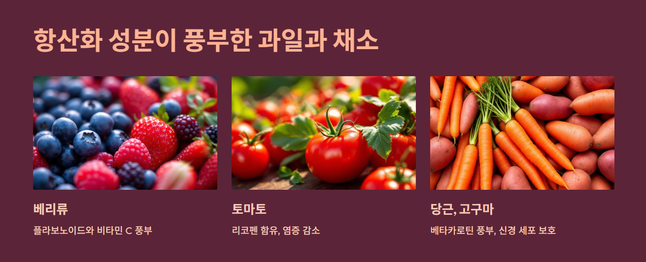 산화 스트레스는 우울증과 관련이 있으며, 항산화 성분이 풍부한 음식은 뇌를 보호하고 기분을 개선하는 데 도움을 줄 수 있습니다.