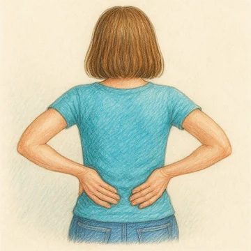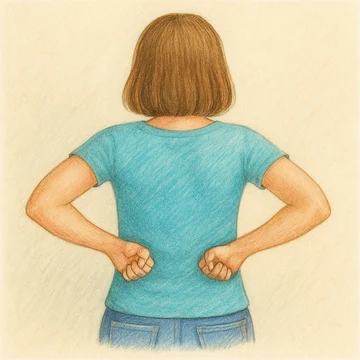 ✔ 2단계: 양손을 허리 뒤쪽 신장 부위(갈비뼈 아래, 허리 양옆)에 올려놓습니다.