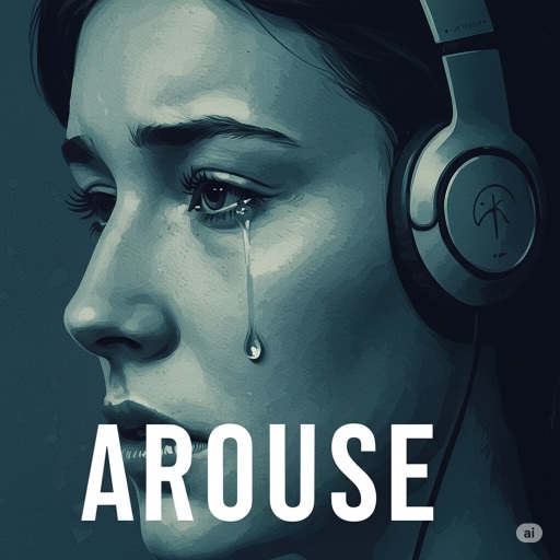 Sad music aroused tears streaming down her face.