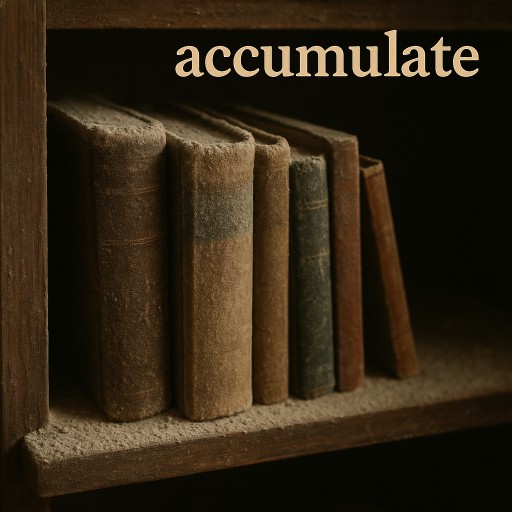 - Over the years, dust accumulated on the forgotten bookshelf.