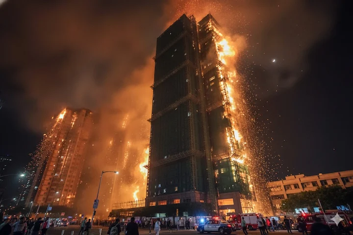 - 연료 공급 가속화: 화재가 발생하면, 이 대나무 비계의 빈 공간이 뜨거운 연기와 불꽃을 건물 상층부로 끌어올리는 거대한 굴뚝 역할을 합니다.